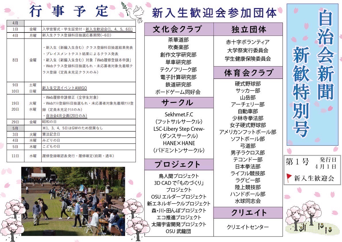 自治会新聞新歓特別号を新入生歓迎会に合わせて作成しました。